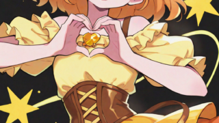 PixAI【Shiitake-Mix】yamabuki inori(precure),yellow punk style blouse, (off shoulder, short puff sleeves), bare arms, cor...